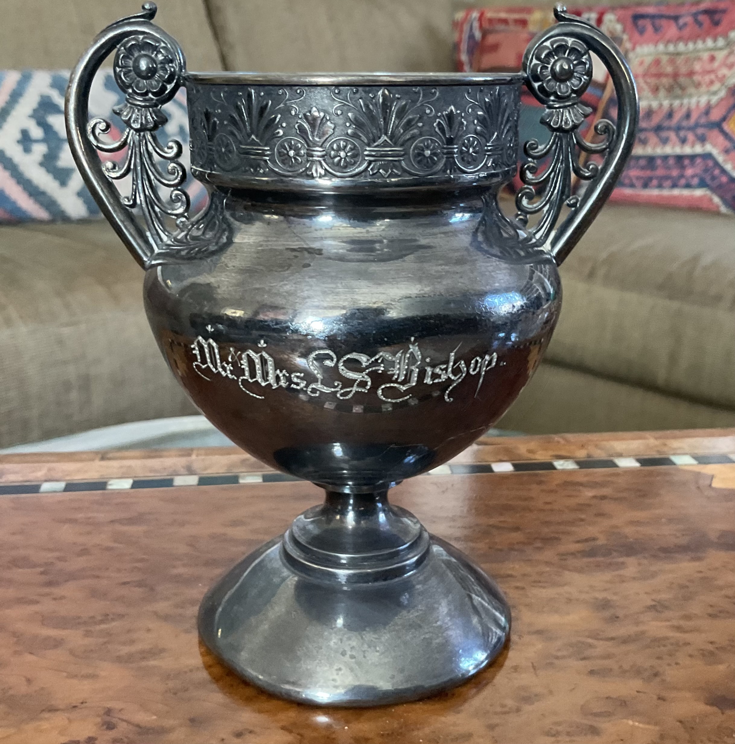 with an unexpected surprise – a loving cup that Bud’s grandparents had given to Mom’s grandparents for their wedding more than a century before.  It had recently found its way to him and he was happy to see it to its rightful owner, Mom.