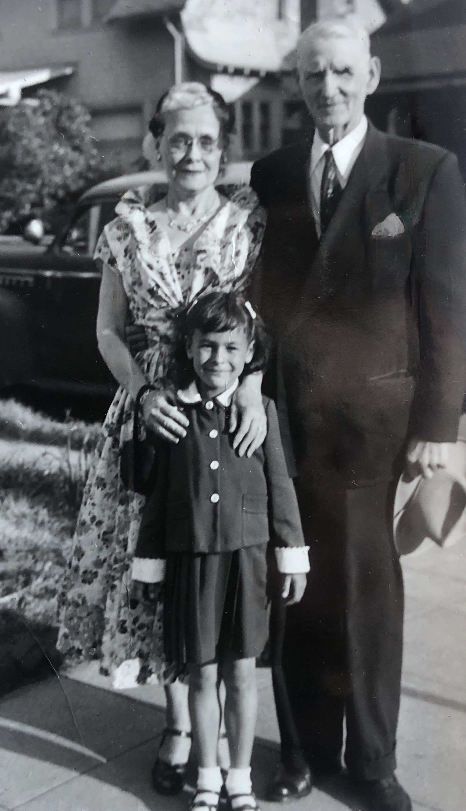 Vicenza died tragically at only 21 giving birth to her second child, who also died, leaving Ginny’s one-year-old father, Michael, motherless and forcing his father to return to Sicily with his infant son.  Michael then returned to the States alone at only 17 – already a skilled tailor and proud of his American citizenship – and made his way to St. Louis where he met and married Vitina’s daughter, Lena, who blessed us with Ginny!